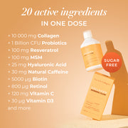 Zaawansowana formuła z kolagenem i multiwitaminami zawiera wyselekcjonowane składniki aktywne, które wzmacniają skórę, włosy, energię i ogólny stan zdrowia. Jedna porcja 25 ml zawiera silną mieszankę 21 składników odżywczych, witamin, minerałów i aminokwasów.